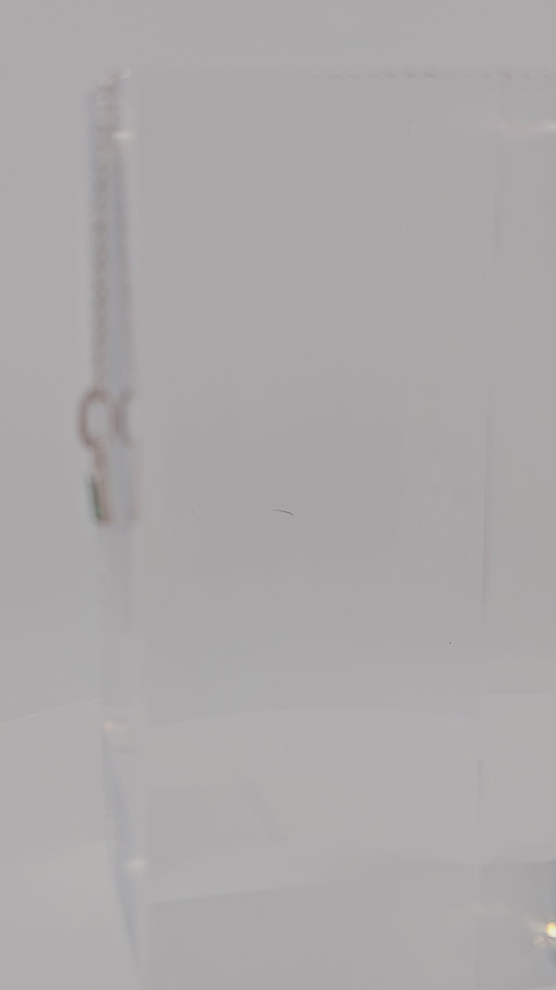 Make a timeless statement with this elegant sterling silver pendant, featuring a brilliant emerald-green gemstone at its center. The rectangular stone is beautifully faceted to catch the light with every movement, adding a vibrant pop of color to your look. Surrounding the pendant are sparkling, pavé-set crystals that provide an extra touch of shimmer and sophistication.